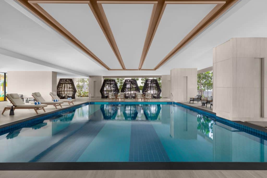 At Marriott Executive Apartments Kuala Lumpur, parents can unwind at the indoor swimming pool, relax in the sauna, stretch out on the sun terrace, or fit in a session at the 24-hour fitness centre. Meanwhile, children can rotate between the cosy indoor Kids Club (complete with a ball pit and book nook), a dedicated outdoor playground and the splash zone at the pool.