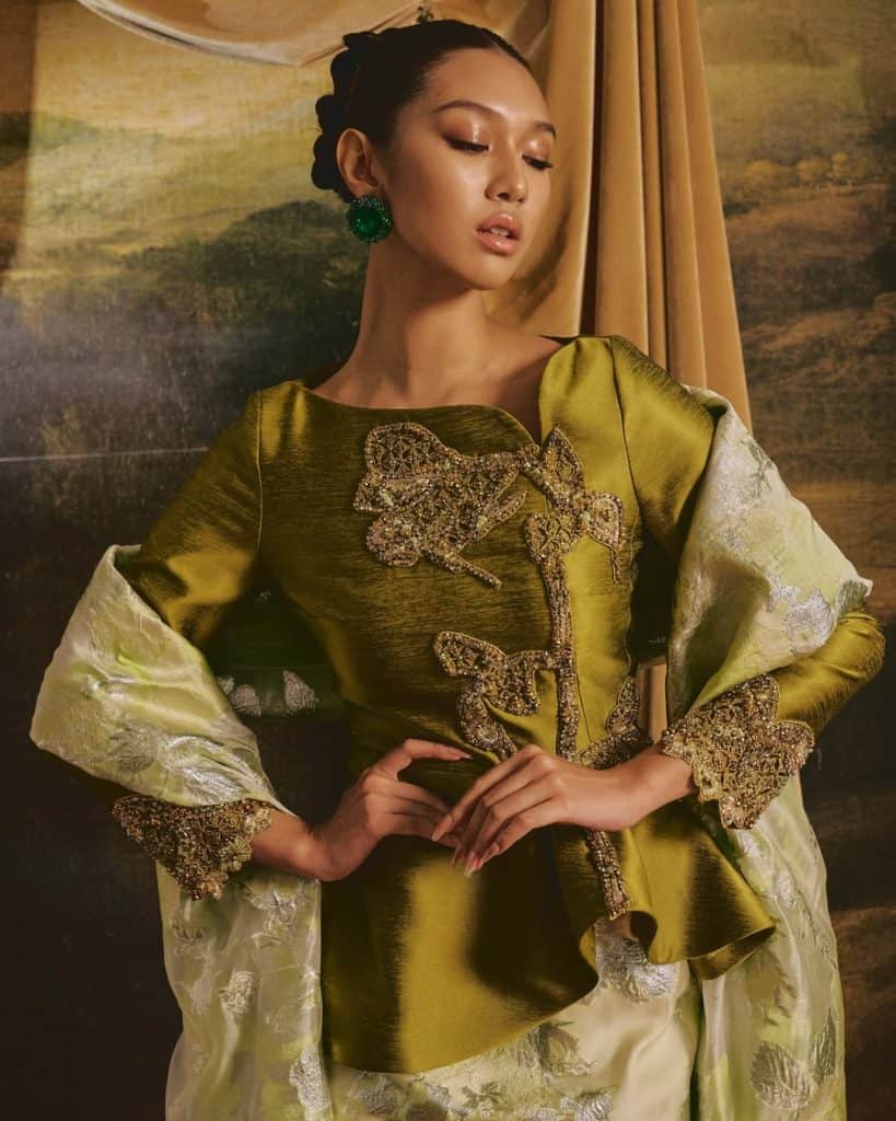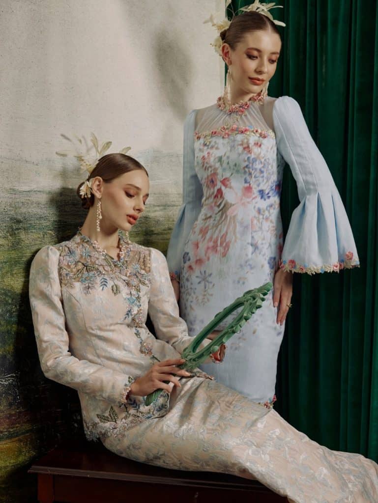 Proudly made in Malaysia, Behati carries eclectic, edgy, and fresh styles to the table. Cleverly merging two festivities together, Chinese New Year and Raya, as well as other ASEAN influences in their ‘Chăm’ collection, Behati explores boxy cuts, slim fits akin to the Vietnamese ao dai, pelikat plaids, structured denim, and their cool version of a ‘Gadis Kretek’ look, to name a few. Powerful and daring, this makes a grand choice for the lass who wishes to make a fashionable impression. Prices start from RM299 per garment.Â