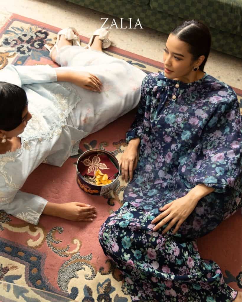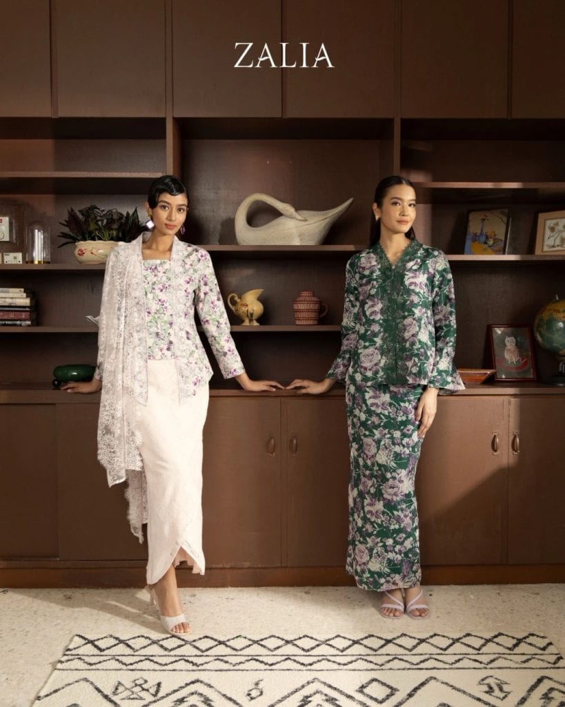 Operating primarily online, Zalia is a popular choice for its consistent quality and styles. Florals and textures play a central role in creating this year’s raya ensembles for Zalia. Whether large, prominent florals over a dark shade or a sweet pastel set with a complementing sheer shawl, you can be sure the finished look is sure to enchant your friends and family.