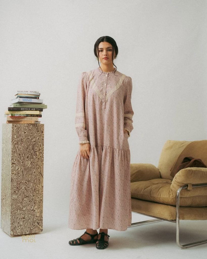 Petit Moi delivers its first long kurung, the ‘Reina’ kurung in Dolce Tempo (RM519) as part of their ‘Grace In Bloom’ collection. Inspired by the gentleness of growth in a woman’s confidence, resilience, and elegance over time, the collection applies wonderful use of lace, mini polka dots, high-necked collars, pleats, and smocking detailing. Besides going for a traditional kurung, try on an airy, loose-fitting dress like the Lundi dress (RM279). The pretty, cosy, and nursing-friendly dress comes in 3 new shades: midnight blue, vintage grey, and antique rose – and it has pockets to boot!