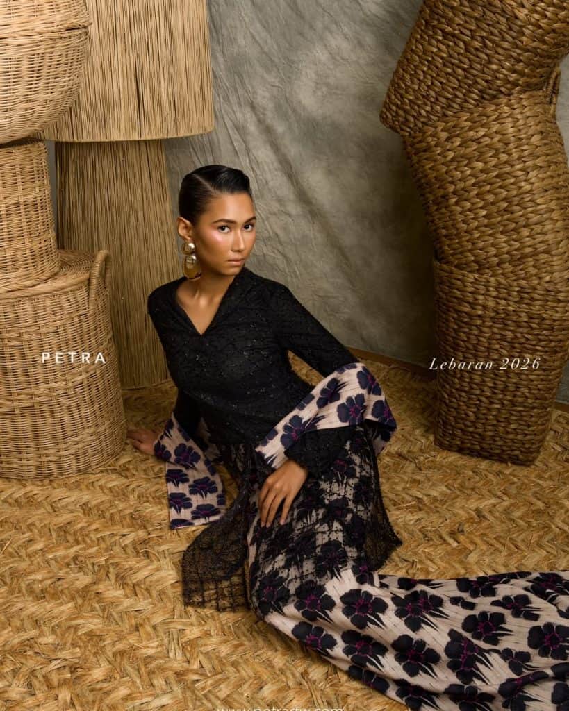 With the release of two original Raya 2026 collections, ‘Essential Raya 2026’ and ‘Petra Lebaran 2026’, Petra caters to the minimalist and maximalist at heart. ‘Essential Raya 2026’ has all-time favourites, like the kurung Kedah in solid colours and loose-fitted kebaya tops with front pleated skirts, whereas ‘Petra Lebaran 2026’ showcases styles with extra pizzazz.Â