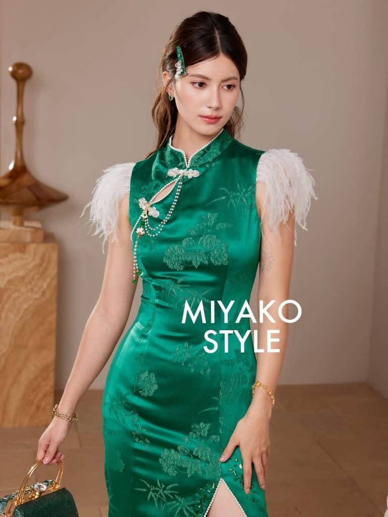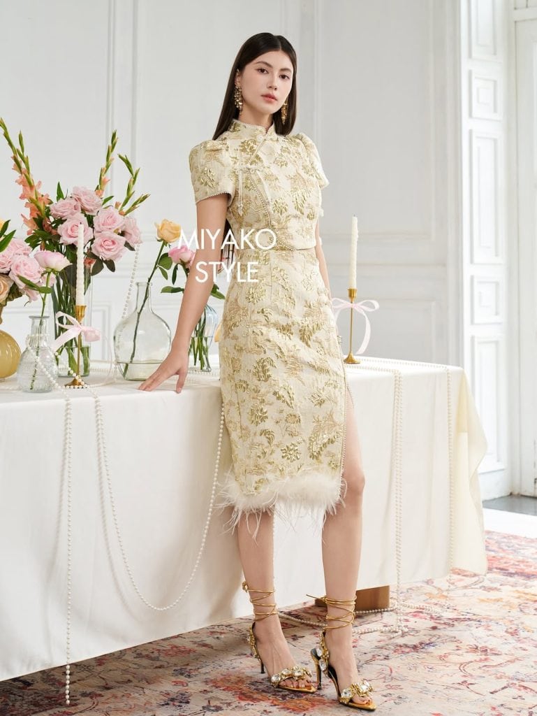 Add a touch of drama, sexiness, and mystery with faux fur and feathered sleeves, ribbons, cut-outs, asymmetrical hems, and rhinestones on your cheongsam from Miyako Style. All orders and pre-orders are crafted in limited batches making it an exclusive purchase per garment. Other elaborate styles come with detachable sleeves, padded tops, and adjustable hemlines to allow room for personalisation.