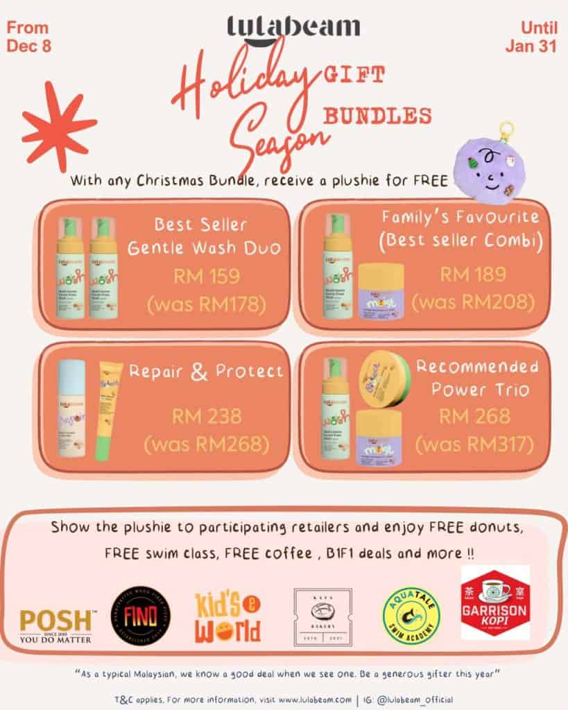 Made with love and free from toxins and other nasties, Lulabeam’s gentle, science-backed formulations make skincare and hygiene for kids a safer experience, with plant-derived ingredients and zero fragrances involved. Pamper and protect your little one’s skin this Christmas, with discounted and specially curated Holiday Season Gift Bundles, starting from RM159.