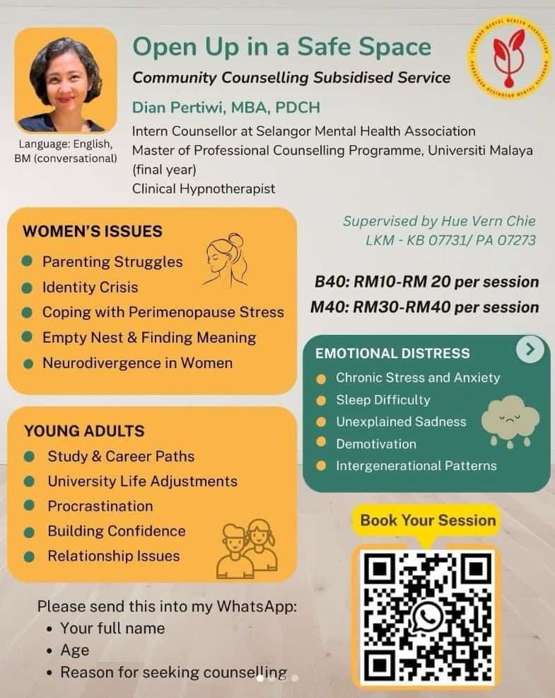 For those seeking a listening ear, Community Counselling offers Selangor residents a safe, supportive space to navigate mental health concerns, emotional distress, and women’s issues with care and understanding.