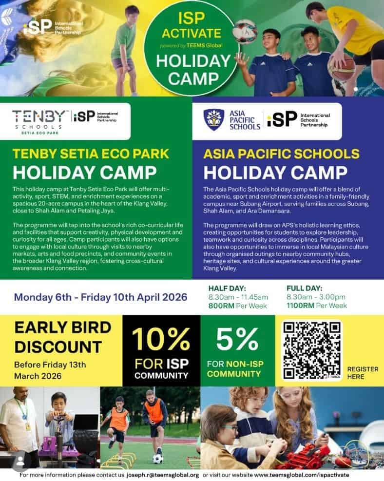 Venue: Asia Pacific Schools, 1 Persiaran A, off Jalan Lapangan Terbang Subang, 47200 Subang, Selangor; Tenby Setia Eco Park, 1 Jalan Setia Tropika U13/18T, Seksyen U13, 40170 Shah Alam, Selangor