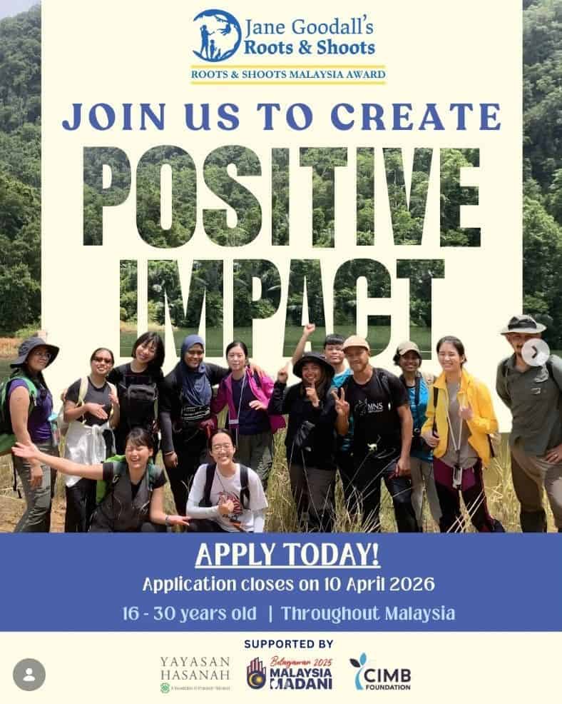 The Roots & Shoots Malaysia Award (RASMA) 2026, inspired by the work of Dr Jane Goodall, recognises young individuals creating positive change — a meaningful platform for youths to turn compassion into action. Celebrating those who make a difference in their communities and for the environment, this initiative empowers the next generation to lead with purpose.
