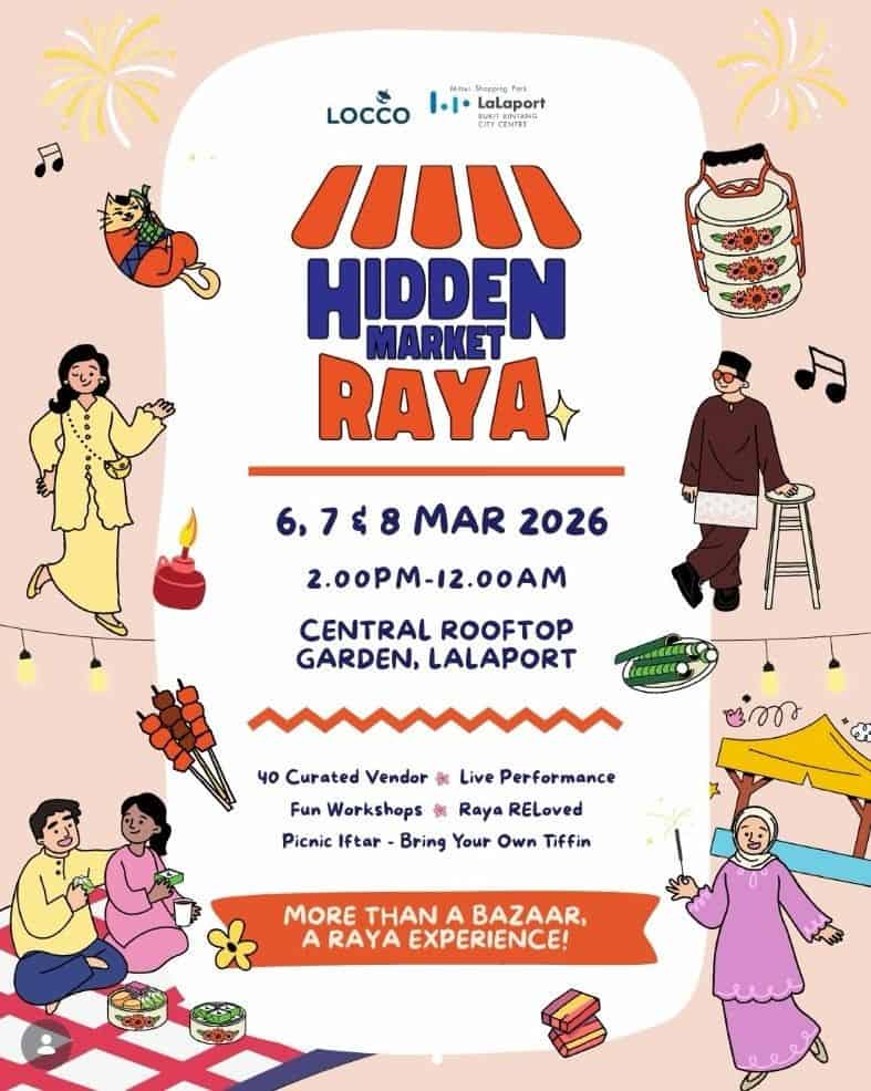 Hidden Market Raya takes the festive spirit to new heights — literally! Held on the rooftop of Lalaport, this vibrant bazaar offers unique Raya finds, artisanal treats, and a cheerful festive atmosphere in an elevated setting.