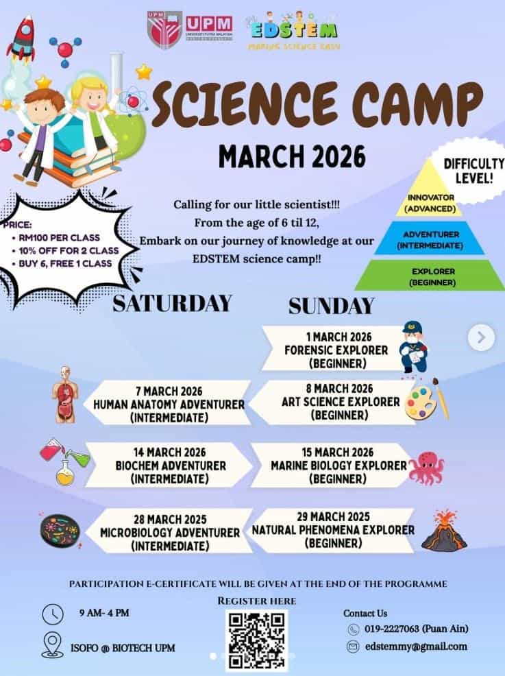 Price: RM65 per child (with a parent), RM60 per child (with a sibling)