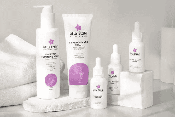 Motherhood can bring noticeable changes to the skin — from stretching and dryness, to increased sensitivity and everyday discomfort. The Little Étoile Mothers’ Care range was created to support mothers through these changes, with pregnancy-suitable skincare designed for face, body, and intimate skin at every stage of motherhood.